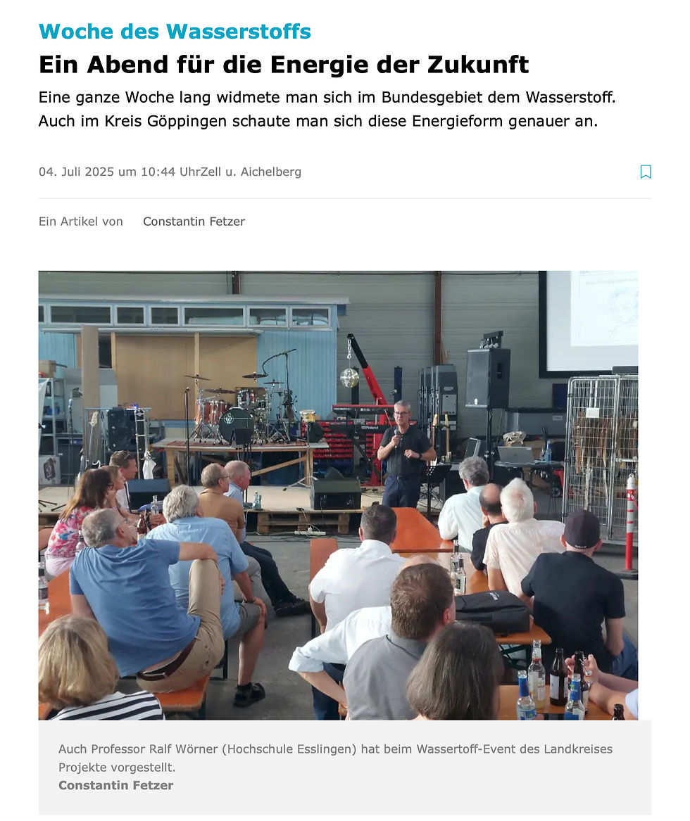 Im Folgenden ein Zeitungsbericht, ein kurzes Video und ein persönlicher Erfahrungsbericht von Michael Frankenberger, Wasserstoffbeauftragter Landkreis Göppingen. Alles ist verlinkt, einfach auf das Bild klicken.